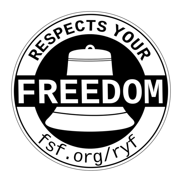 Revision as of 14:16, 16 February 2016 by Freephile (talk | contribs) (Respects Your Freedom. Uploaded from https://static.fsf.org/nosvn/ryf/RYF.png Category:Logo Category:FSF)